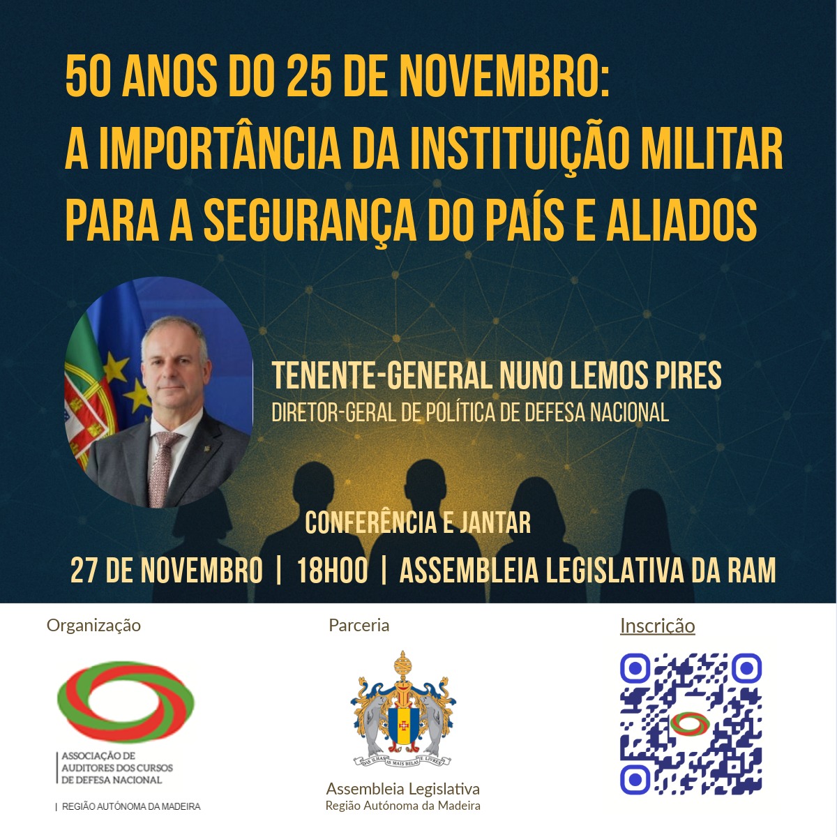 A Assembleia Legislativa da Região Autónoma da Madeira, em parceria com a Delegação da Madeira da Associação de Auditores dos Cursos de Defesa Nacional (AACDN), promove a conferência“50 Anos do 25 de Novembro: A Importância da Instituição Militar para a Segurança do País e Aliados”,a cargo do Tenente-General Nuno Lemos…